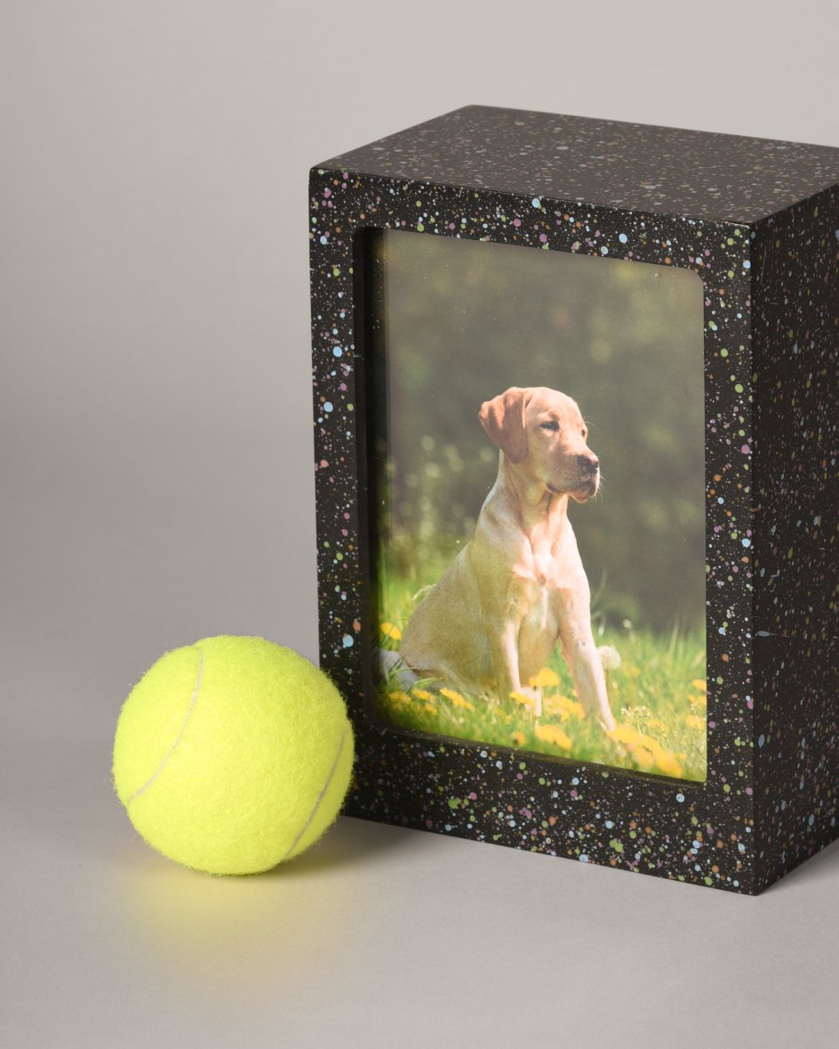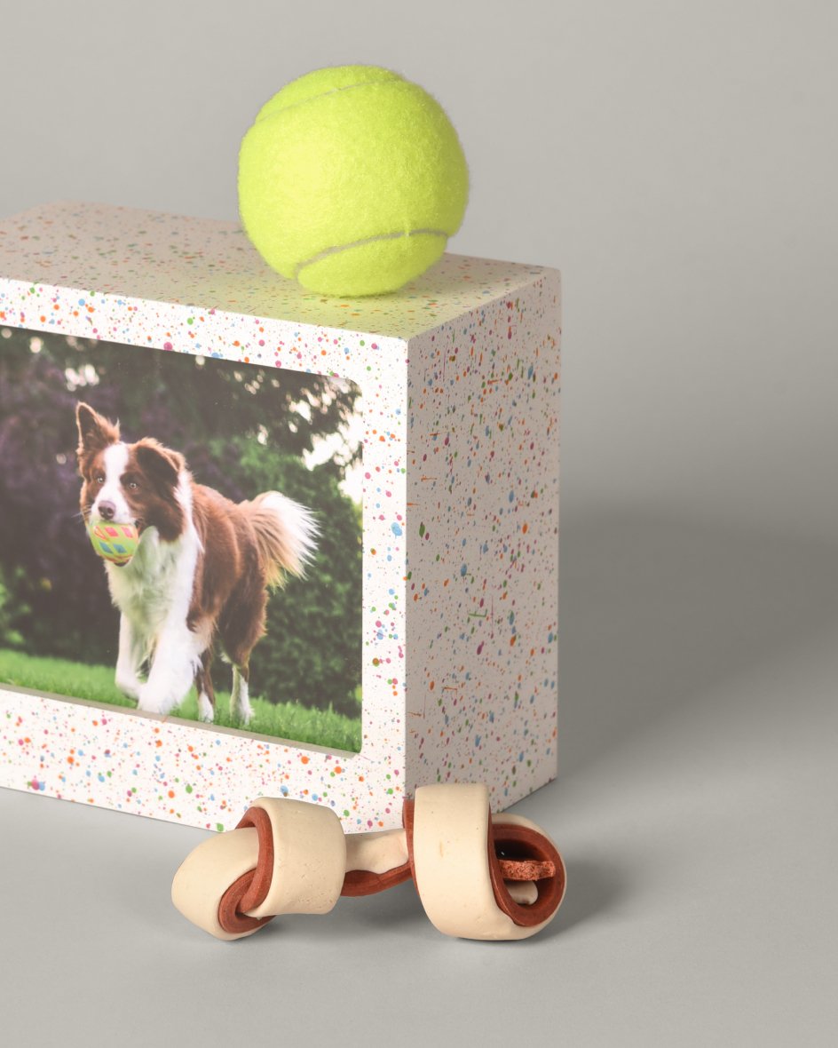 Cuenta con espacio para una foto de la mascota y está disponible en opción vertical y horizontal.