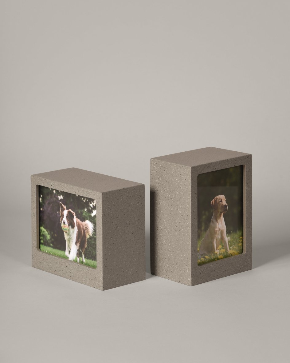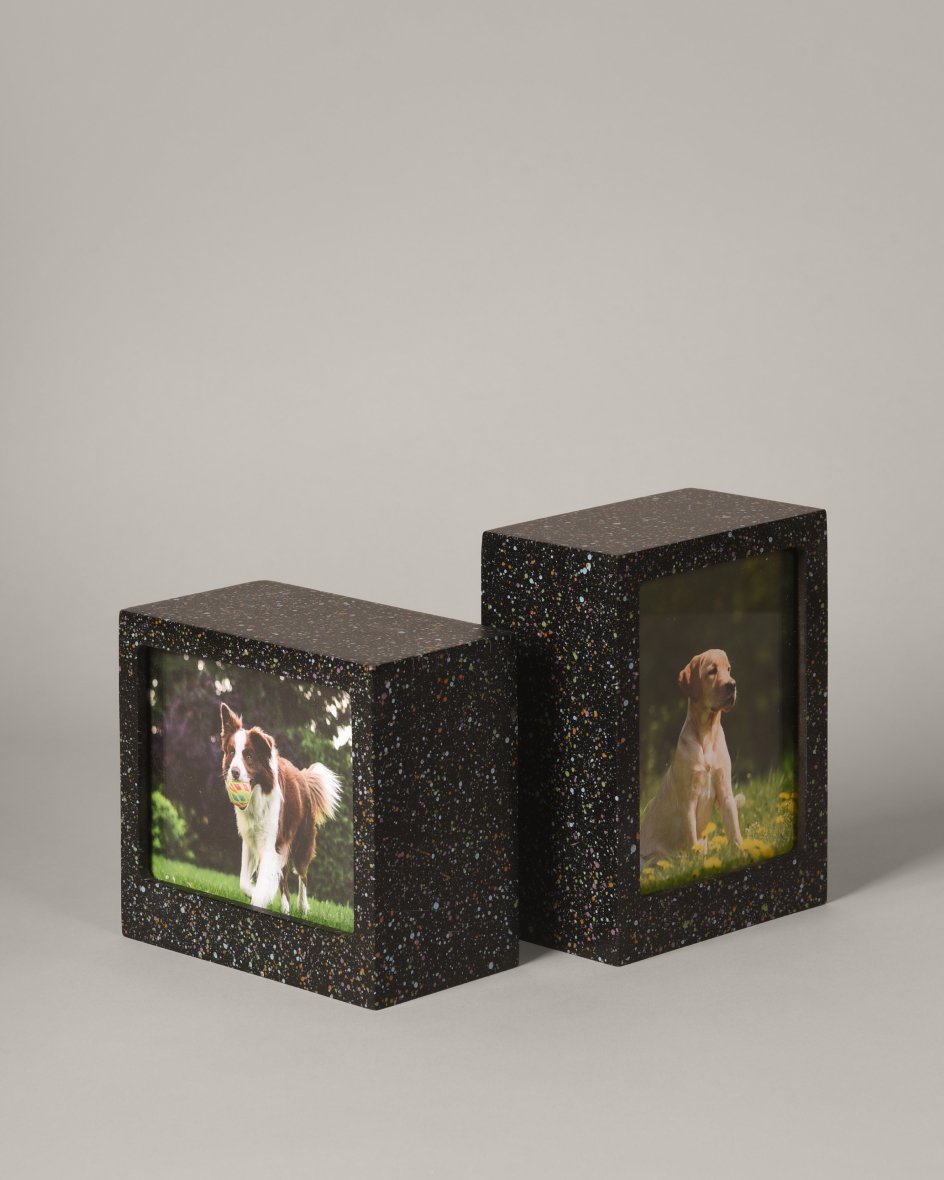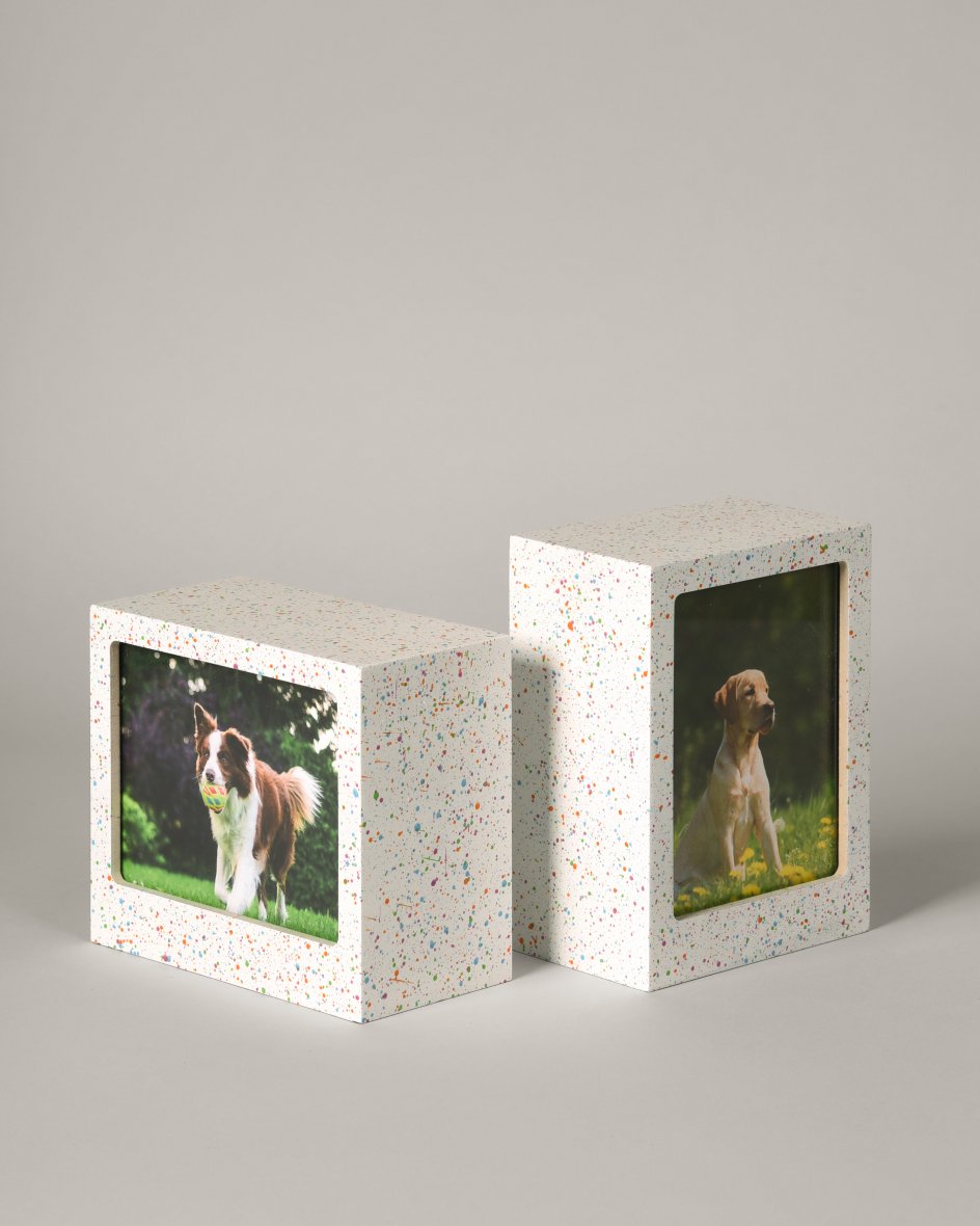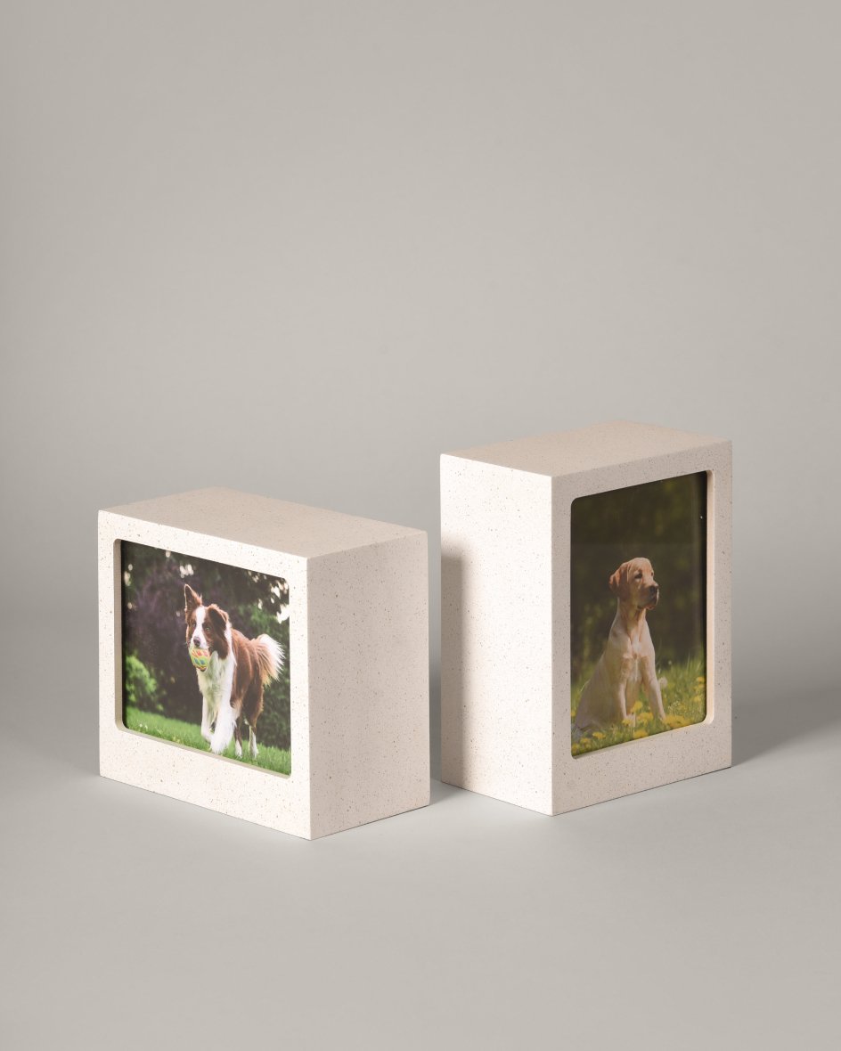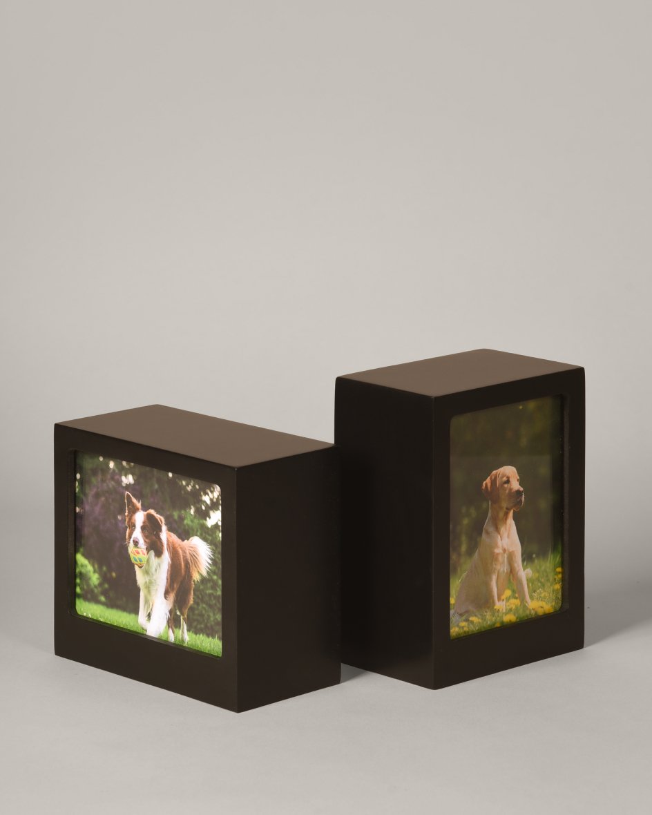 Cuenta con espacio para una foto de la mascota y está disponible en opción vertical y horizontal.